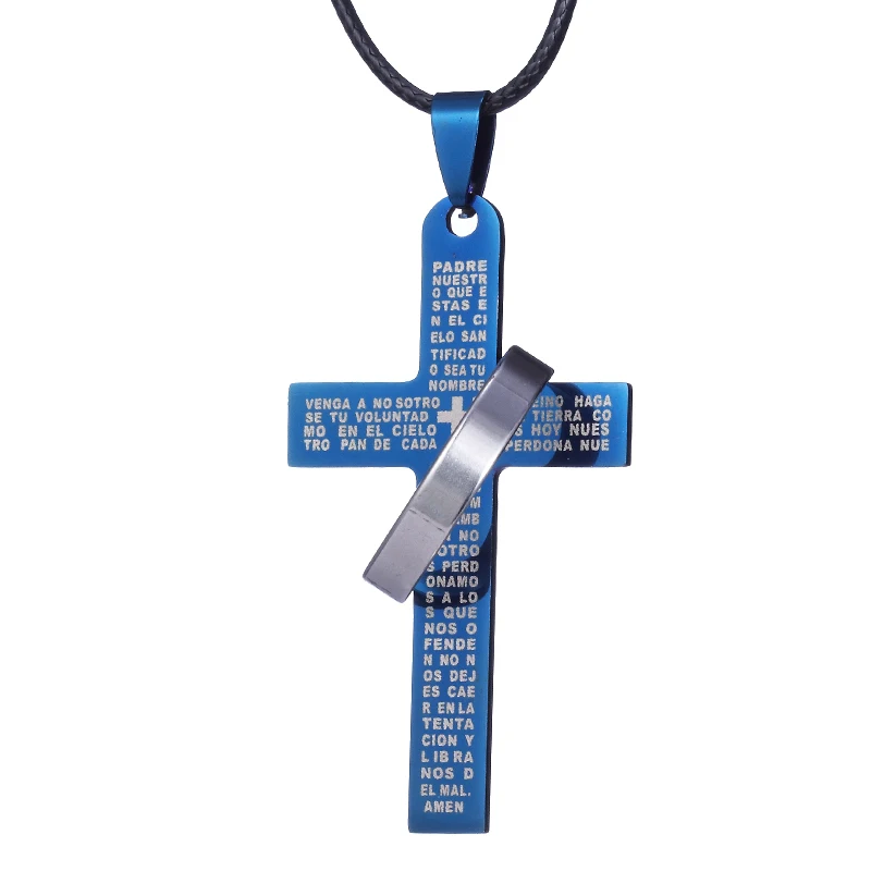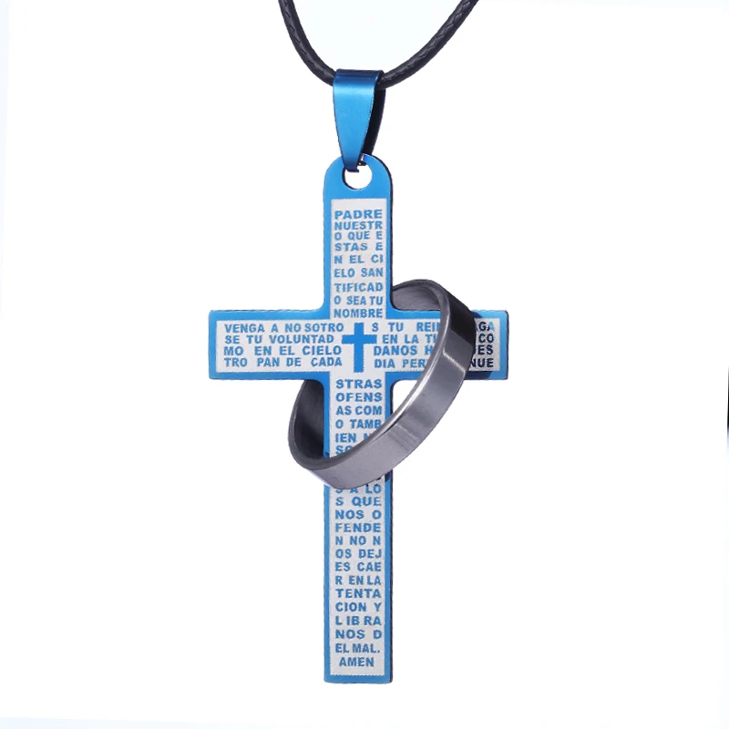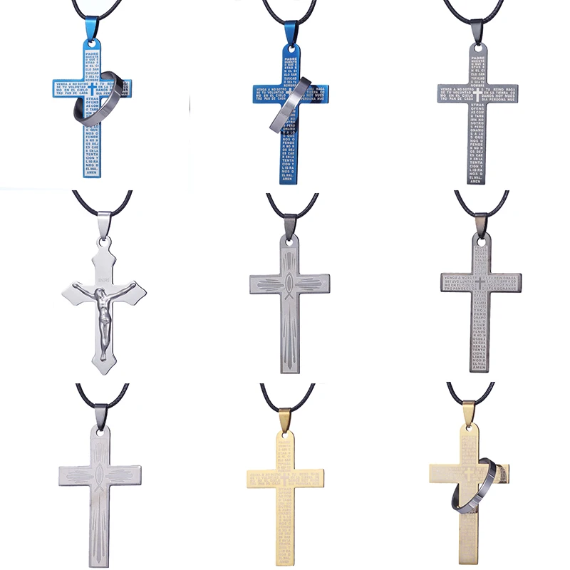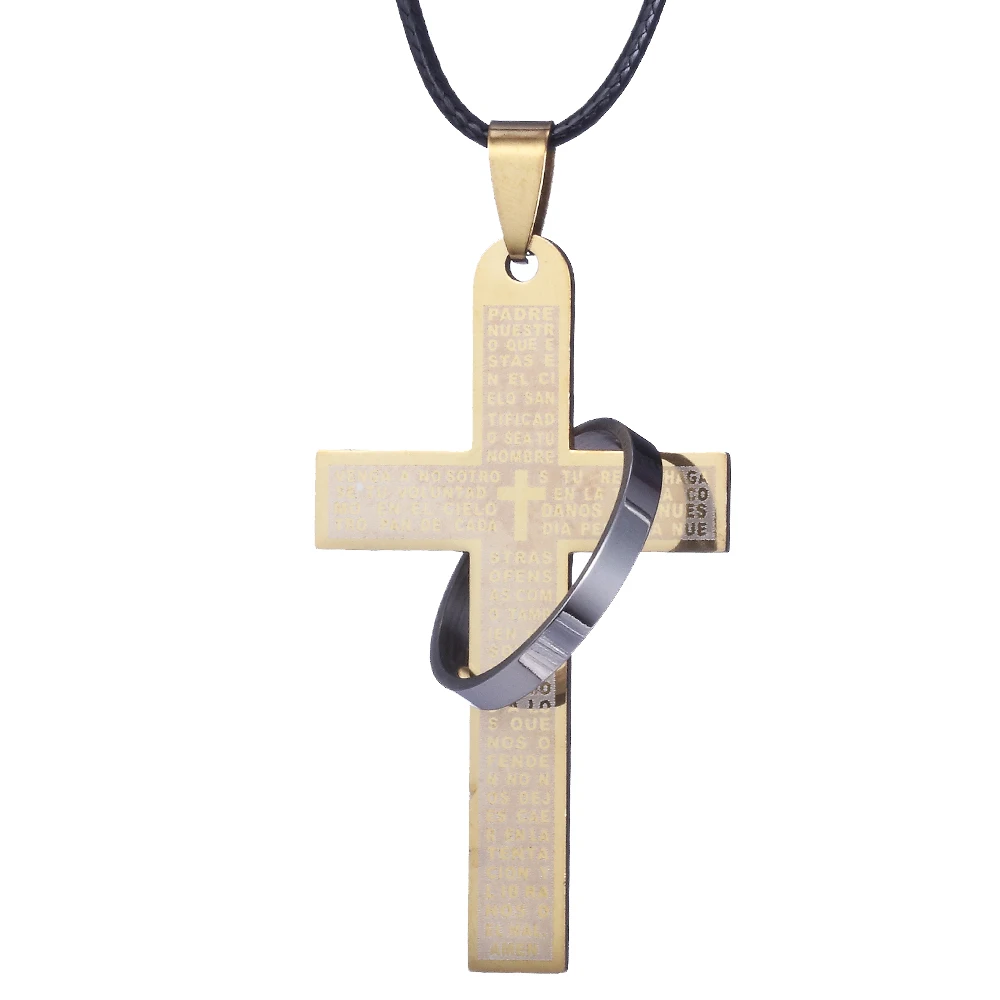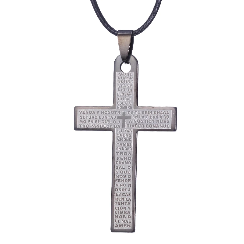 Stainless Steel Bible Necklace Jesus Cross Pendant For Men Women